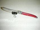 This 6' butterspreader can be used as traditionally in France to take butter from a separate butterdish; Watch it: it is sharp enough to cut the hardest appetizer sausages, cheeses. Stainless steel 3" blade, dish washer safe. Handle in Flash Red color made of acrylique.