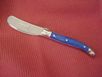 This 6' butterspreader can be used as traditionally in France to take butter from a separate butterdish; Watch it: it is sharp enough to cut the hardest appetizer sausages, cheeses. Stainless steel 3" blade, dish washer safe. Handle in Flash Blue color made of acrylique.