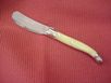 This 6' butterspreader can be used as traditionally in France to take butter from a separate butterdish; Watch it: it is sharp enough to cut the hardest appetizer sausages, cheeses. Stainless steel 3" blade, dish washer safe. Handle in Pale Horn color made of acrylique.